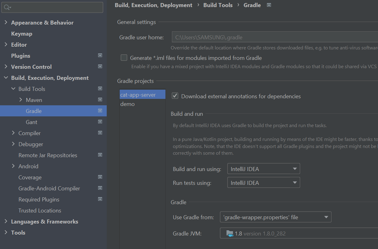 Gradle JVM: 프로젝트에서 사용하는 JDK 버전
