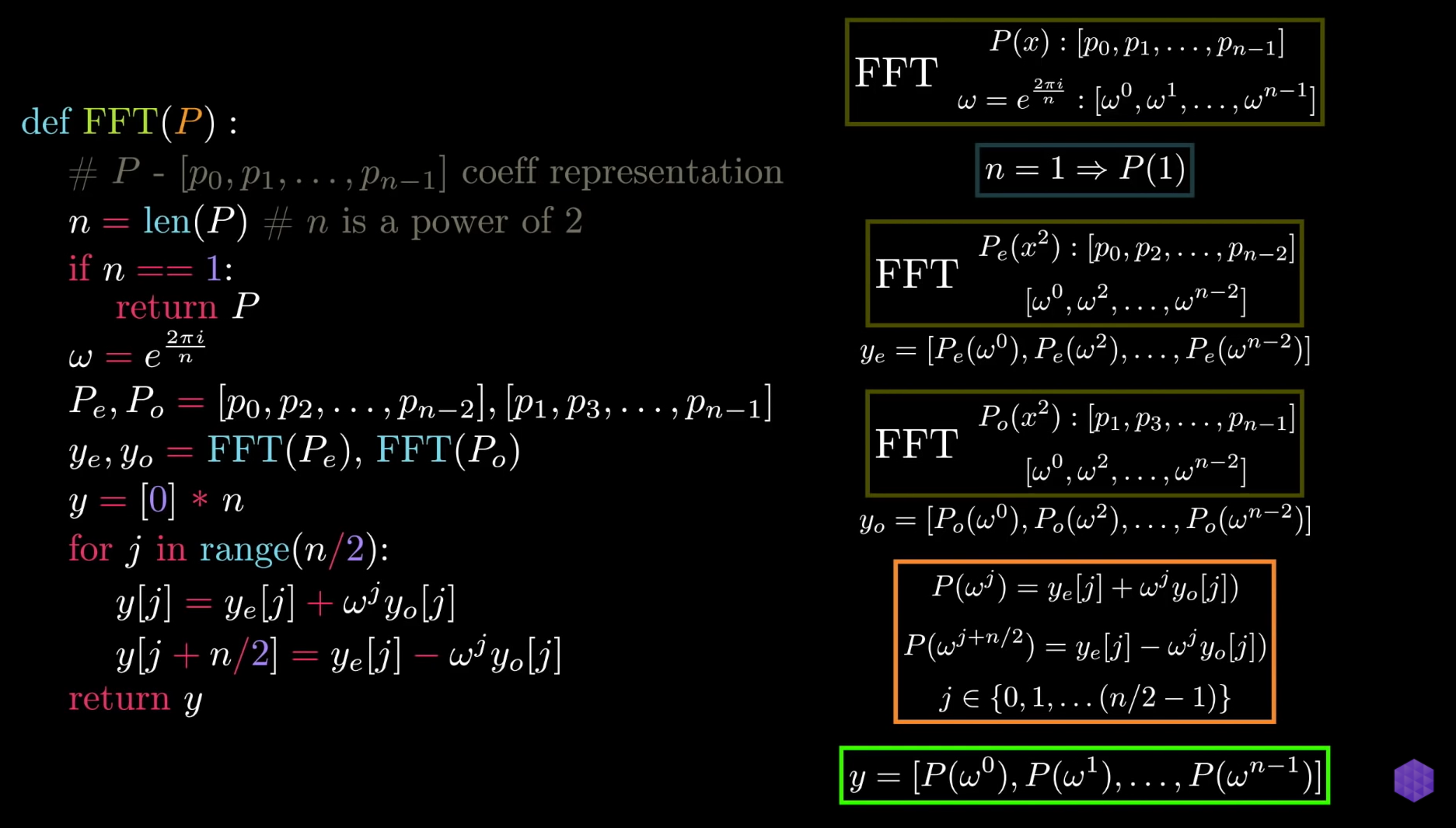 3. Evaluation을 1의 n제곱근에 대해 수행 -> FFT