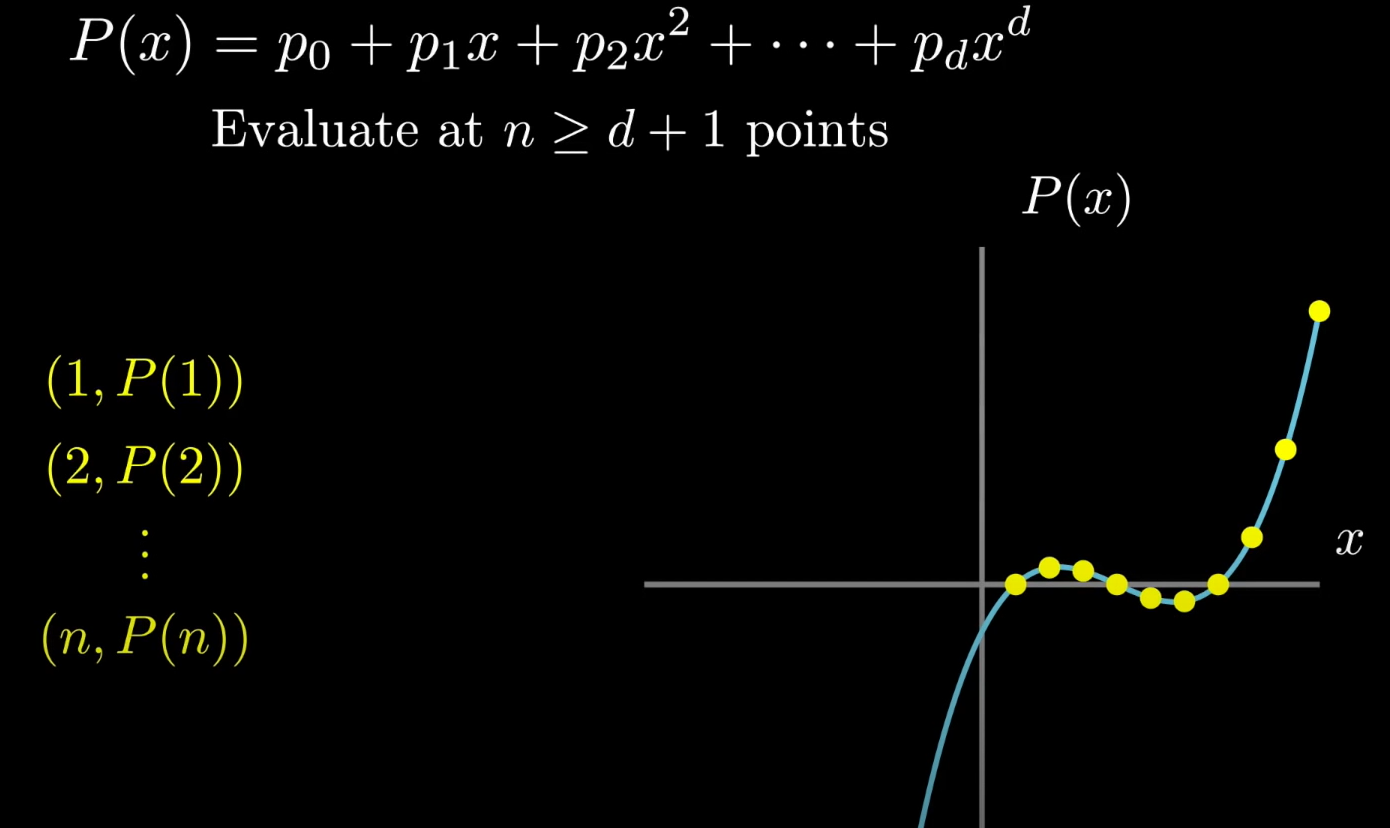 다시 한 번, d차수의 다항식을 '유일하게 정의'할 수 있으려면 (d+1)개 이상의 점들이 필요하다