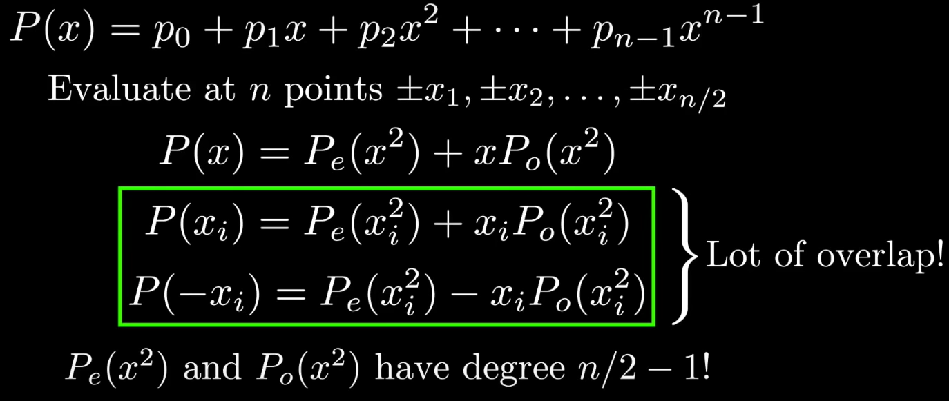 : 그렇다면 위의 이미지와 같이, n차 다항식을 (n/2 - 1)차 다항식의 합으로 표현할 수 있게 되는 것이다!