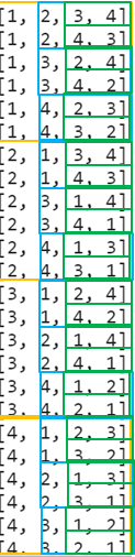 처음 6개 - (n-1)! = (4-1)! = 3! = 6 - 의 경우는 1로 시작하고, 다음 6개의 경우는 2로 시작하고, ... 이런 패턴이 보인다.